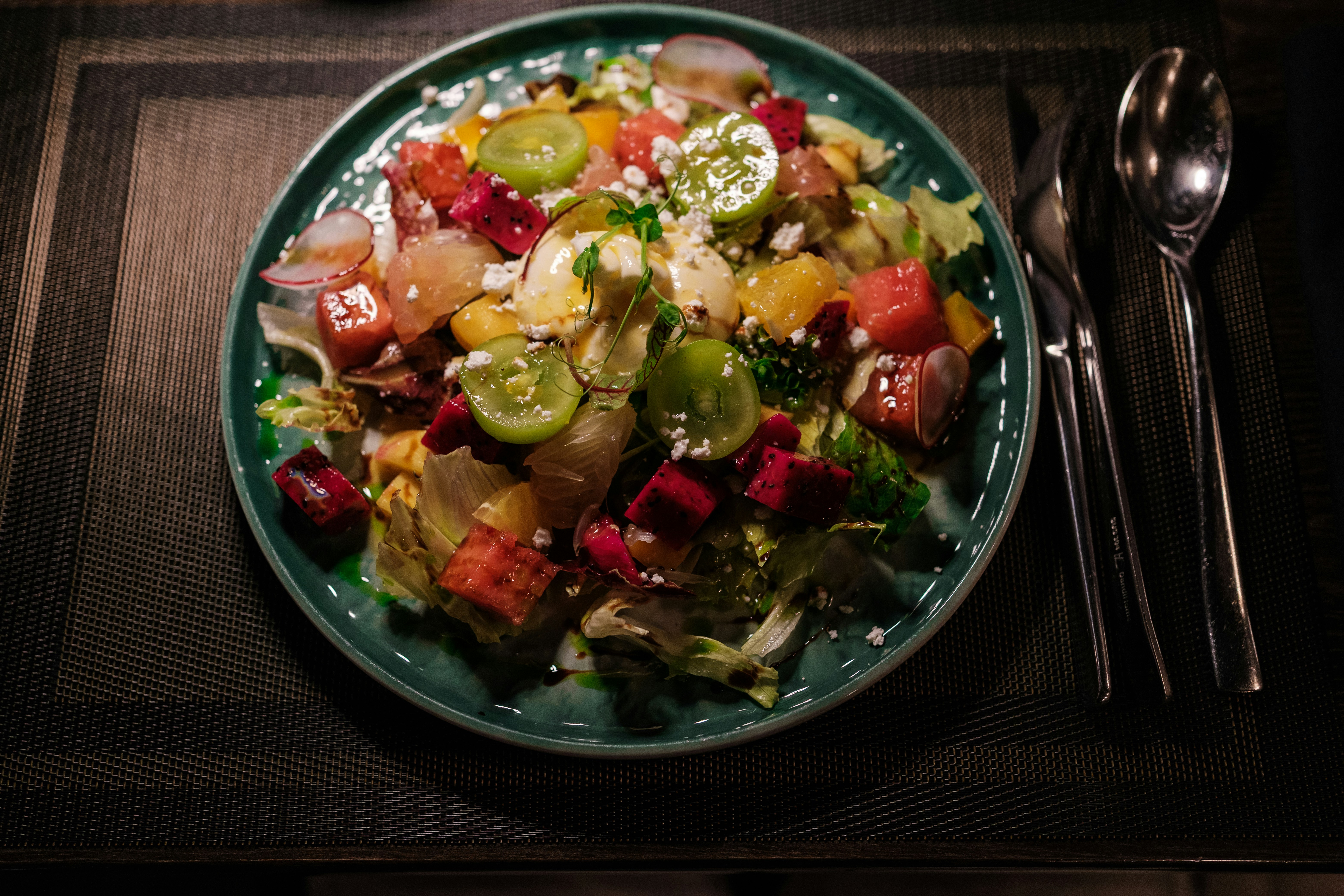 These fruits introduce a sweet element that balances the savory components of the salad. For those looking to add protein, consider including prosciutto or grilled chicken slices for a heartier version that can serve as a main course rather than just an appetizer.